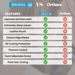 • Durable & Long-Lasting: Made from high-carbon razor-sharp stainless steel, these scissors are built to last. The durable material ensures they stay sharp for long-term use, providing a reliable cutting experience with each use.